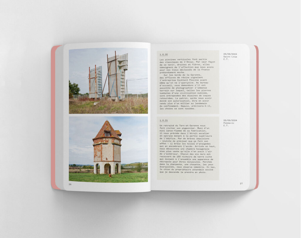 Chaque livre, tel un carnet de voyage, rassemble 12 régions parcourues au gré de rencontres, d’arrêts, d’intuitions qui les incitent à prendre une ou plusieurs photographies.