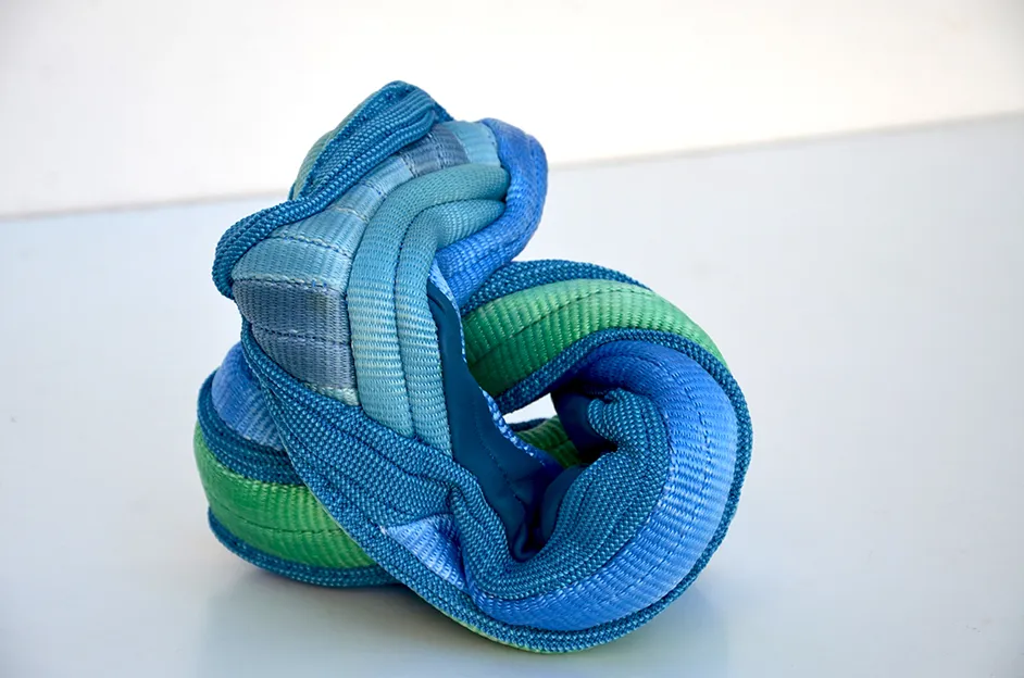 Venue à la sculpture par le modelage, les créations d’Awena Cozannet confirment le travail de la main et la dimension performative de ses sculptures qu’elle photographie. Les matériaux qu’elle affectionne relèvent de ceux qui protègent et prolongent le corps en assurant une seconde peau à notre enveloppe. Ainsi, en les portant elle-même ou en y associant danseurs ou volontaires, elles les activent le temps de la performance. Écheveaux de laine, cordes, sangles synthétiques, ossature en métal, outils anciens, objets manufacturés sont liés entre eux à la manière d’une greffe. Des coutures telles des points sutures qui ondulent et croissent à la manière de racines.