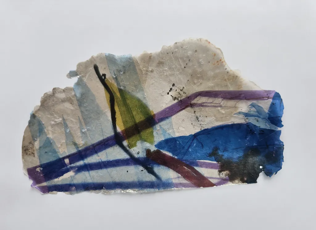L’intimité du Cabinet permet de réunir pour la première fois 6 artistes rencontrés à l’occasion de différents articles écrits pour la presse papier. La plupart ne se connaissaient pas avant d’accoster ensemble sur la mezzanine de la galerie lyonnaise. On atteint le rivage de nouvelles images, telles que les paésines (pierre de rêve) de microplastiques échoués transformés par Laurence Nicola ou les capsules temporelles des diapositives anonymes développées à l’aquarelle par Stéphane Belzère. La poésie lumineuse s’imprime en rythme chez Yann Bagot et se contorsionne en remous sous les doigts d’Awena Cozannet. L’élan de l’encre des paréidolies de Patricia Erbelding rejoint les impressions sensuelles et scarifiées de Coskun.