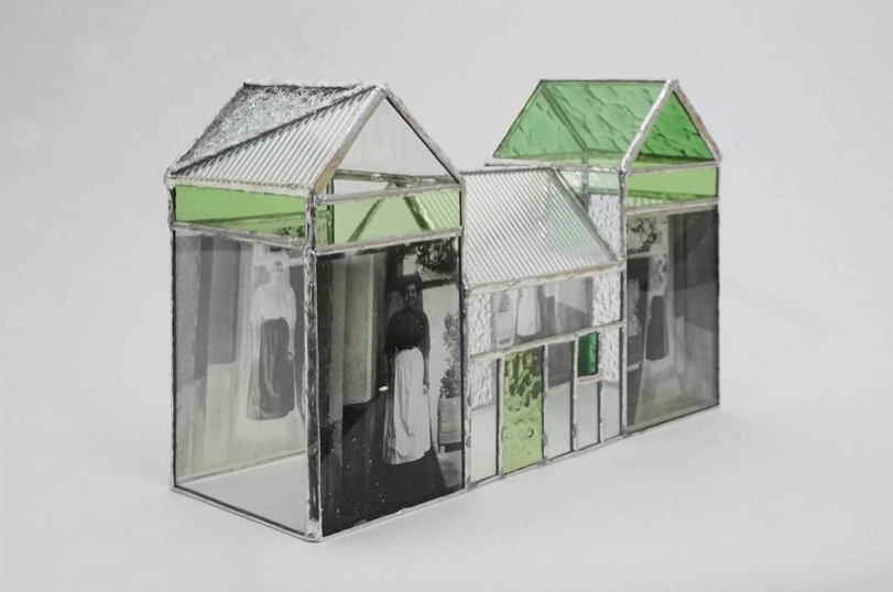La Galerie Binôme accueille les dernières séries d’Anaïs Boudot sous le titre « Nos reconstructions ». Elle y développe l’imaginaire social de la maison individuelle en lien à des clichés de famille anonymes réalisés sur plaque de verre. Des œuvres bidimensionnelles entrent en dialogue avec des sculptures utilisant des verres chinés associés à de petits vitraux Tiffany soudés avec de l’étain.