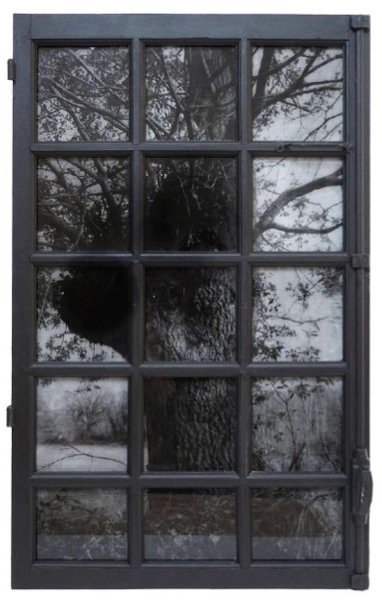 Autre commande importante en 2024, Christine Ollier lui confie la restauration des vitraux de la Folie, kiosque de la Cour de Bellême dans le Perche. Dans l’exposition actuelle de la galerie, on peut en voir deux exemples prolongeant cette pratique dans Les ouvertures, organisant des polyptyques avec un arbre et une mer à l’intérieur d’un châssis de fenêtre.