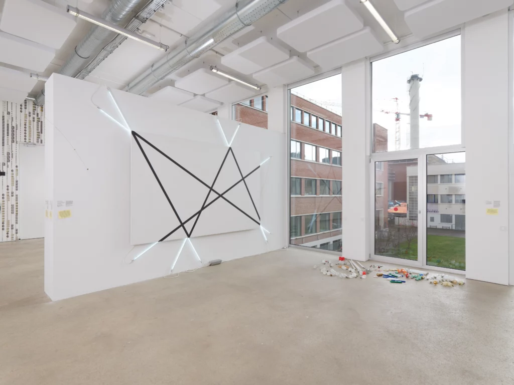 L’exposition, comme événement, est aussi le moment d’une nouvelle intervention de l’artiste sur l’œuvre, figée un temps dans les collections (François Morellet) ; elle est, en amont et en aval, le temps et le lieu d’infléchissement du travail de l’artiste, de reconstitutions en abyme (Ryan Gander), de nouvelles perspectives de collaboration, plus ou moins fictionnelles, ou d’exploration (Stéphanie Cherpin / Maria Corvocane, Salomé Botella). Ruptures et continuité participent à la configuration de l’œuvre dans ses artefacts et son histoire (John Smith). Les œuvres protocolaires, à la réalisation liée à une machine ou déléguée, avec ou sans la collaboration de l’artiste, invitent à penser la permanence de l’idée et l’impermanence de sa forme (Michel Blazy) ; à s’emparer, dans son exposition matérielle ou virtuelle, du dialogue, constamment renouvelé de l’artiste, du collectionneur, du commissaire et du spectateur ; à fantasmer les lectures plurielles dans l’interaction formelle (Paola Siri Renard), les jeux référentiels (les Laocoons de Koenraad Dedobbeleer et Étienne Bossut), les rapprochements, plus ou moins ambigus, avec les œuvres alentour (Marie Lund et Liz Magor) et l’agencement architectural (Charlotte Simonnet) et synesthésique de l’espace d’exposition.