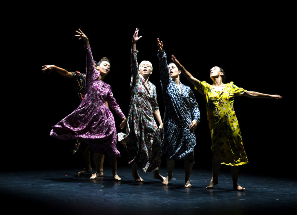 Les mécaniques dansées se recalent sur le dernier morceau plein de vitalité. Les effets de robes s’y multiplient prouvant que cette chorégraphie se situe bien dans une version féminine actuelle illustrant une tendance post Pina Bausch, entre hip-hop, théâtre et révolte dansée.