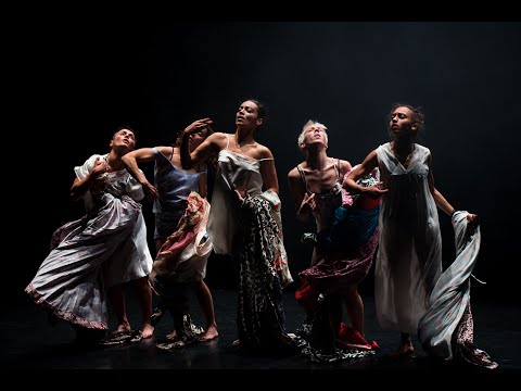 « Tandis que les tissus volent, brillent, craquent, tournent, traînent ou tombent, leurs corps fusionnent, vibrent et se soulèvent. » La suspension en hauteur de cinq robes couleurs et de matières variées marque l’espace comme autant de signaux de mode, tandis qu’à leur pied les danseuses poursuivent la conquête de leur liberté corporelle.