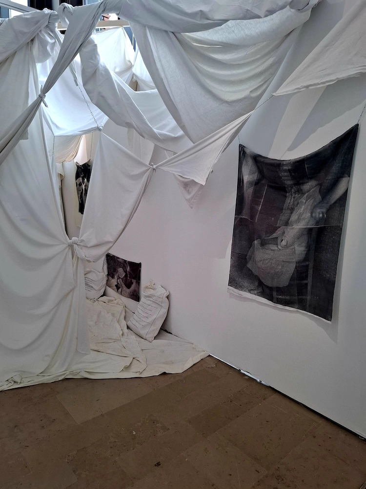 Plusieurs installations explorent des situations variées, Abirami revisite à partir de ses cires la culture de ses ancêtres sri lankais dans une approche ethnologique que partage le franco-iranien Darius Dolatyari-Dolatdoust avec ses panneaux peints et leur accompagnement sonore constituant une légende des exils. Charlotte Gautier van Tour (diplômée de l’ENSAD) met en présence des éléments naturels dans une recherche d’alchimies organiques à base de fioles, de peaux et de gazes qui interrogent les écosystèmes. Cynthia Montier (diplômée de l’université de Strasbourg) dresse une chapelle de tissu de lin blanc, avec des photos lithographiées sur des linges et des objets présents pour des cérémonies mémorielles. Dans un accrochage évoquant un musée de société, Arthur Debert (sorti des Beaux-Arts de Nancy) rend hommage aux objets de son grand-père.